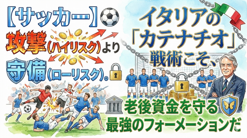【サッカー】攻撃(ハイリスク)より守備(ローリスク)。イタリアの「カテナチオ」戦術こそ、老後資金を守る最強のフォーメーションだ