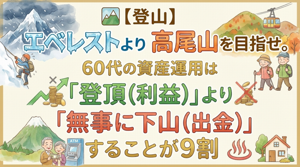 【登山】エベレストより高尾山を目指せ。60代の資産運用は「登頂(利益)」より「無事に下山(出金)」することが9割
