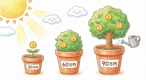すると、実る果実(利益)も「2倍」になります。 - 資金90万円の場合