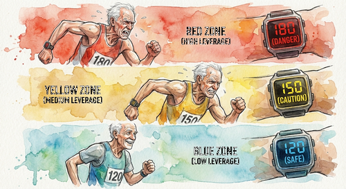 | ペース配分(ラップタイム) 一定のリズムで走ること。 乱れると後半バテる。 | レバレッジ管理 一定の資金比率で運用すること。 高くしすぎると破産する。 |