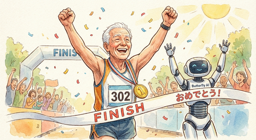 | ペースメーカー(ペーサー) 目標タイムへ導く伴走者。 風船をつけて走る人。 | Butterfly(自動売買AI) 目標資産へ導く伴走システム。 感情を持たず淡々と稼ぐ。 |