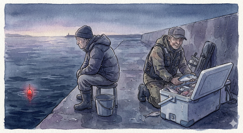 隣のベテラン釣り師は