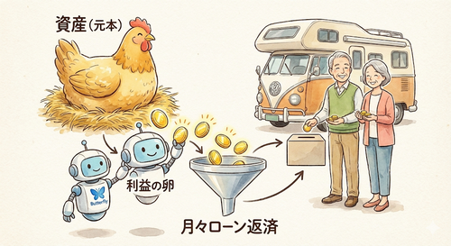 | キャンピングカー 自由な旅を約束する乗り物。 維持費がかかる「負債」。 | Butterfly(AI) 経済的自由を約束する乗り物。 利益を生む「資産」。 |