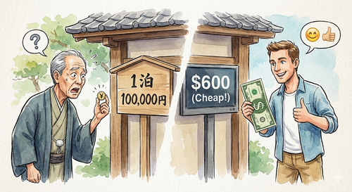 | 1泊5万円の宿 インバウンド標準価格。 | 高い… 諦める | 実質3万円感覚 (利益で補填) |