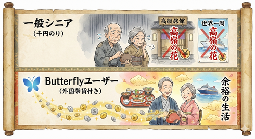 | 項目 | 一般のシニア (円のみ) | Butterflyユーザー (外貨の利益あり) |