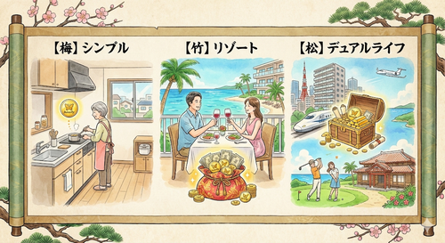 | 【梅】 シンプル移住 | 内陸のアパート。 自炊中心。 海はたまに見に行く。 | +3〜5万円/月 (元本30〜50万円) |