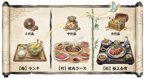 | 【梅】ランチコース 焼肉ランチ・サラダ | 約 6,000円〜 | 月 10,000円 (手堅い月) |