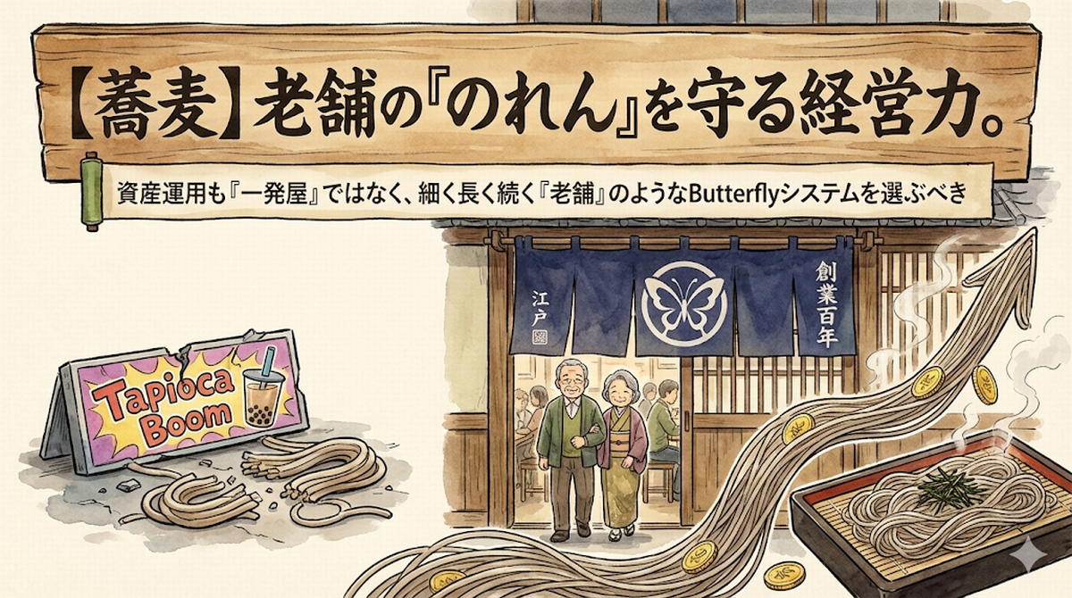 | 項目 | 一発屋投資 (タピオカ型) | 老舗投資 (蕎麦屋型・Butterfly) |
