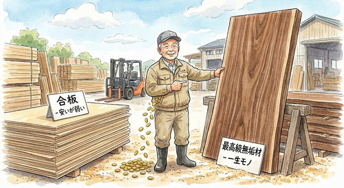 合板ではなく無垢材を。