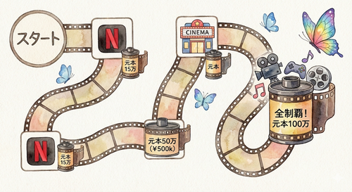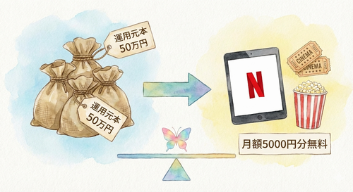| Netflix (スタンダード) 約1,500円 | 約 50円 | 約 15万円 ※お小遣い程度で達成! |