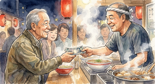 屋台で隣り合ったシニアからの、